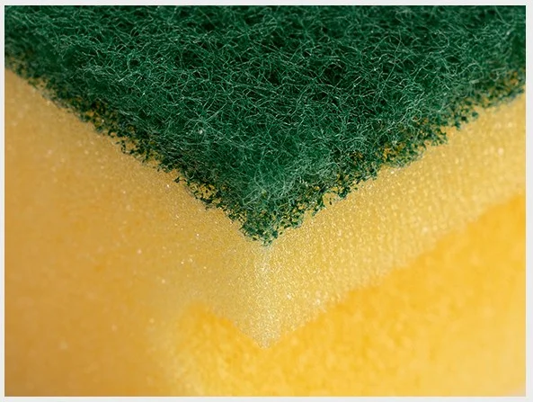 Абразив соединен с пенкой термохимическим способом, что исключает его отклеивание в процессе эксплуатации и продлевает срок службы губки. Легко выжимается и представлена в двух размерах для удобства при уборке больших и малых площадей.