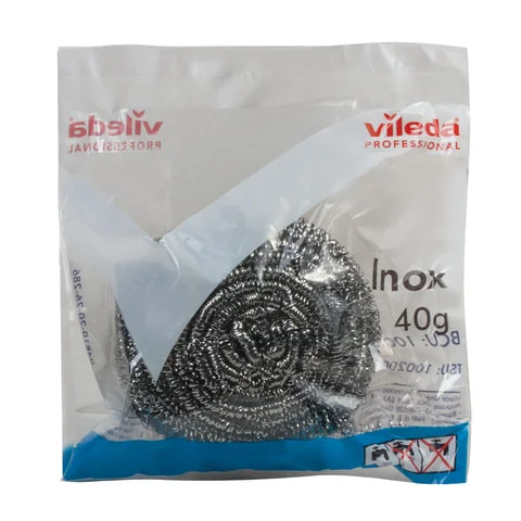 Профессиональная спираль из нержавеющей стали предназначена для удаления сильных загрязнений на пищевых производствах, кухонном оборудовании и посуде. Инокс – прочная и стойкая чистящая спираль с высокой эффективностью очистки. Изготовленная из 100% нержавеющей стали, она подходит для интенсивного оттирания и удаления въевшейся грязи. Спираль легко промывается под проточной водой и при необходимости дезинфицируется. Представлена в двух размерах: 40 и 60 г.