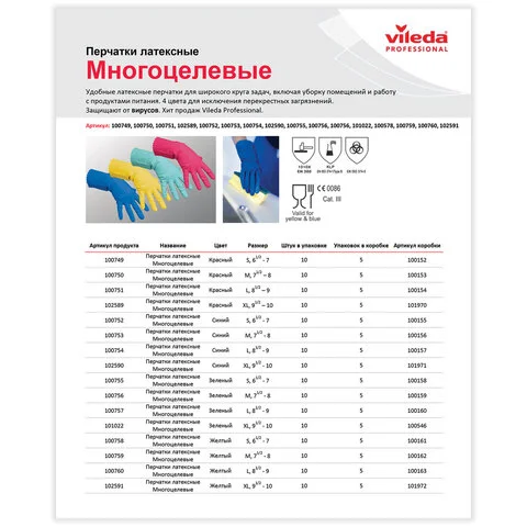 Перчатки Многоцелевые от Vileda Professional изготовлены из натурального латекса и предназначены для профессиональной уборки и выполнения различных задач, включая работу с продуктами питания и уборку помещений. Они обеспечивают защиту от вирусов и эффективно защищают руки во время работы. Подходят для использования с разведенными моющими средствами и дезинфектантами, а также для работы на сухих и влажных участках.