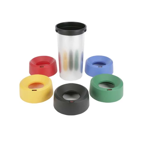 Крышки контейнера доступны в пяти цветах для сортировки отходов, а также в черном цвете для квадратных и двустворчатых моделей. В комплект входят специальные наклейки для маркировки. Цветовая кодировка помогает соблюдать правила сортировки и гигиены.
