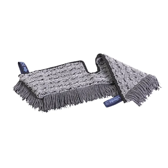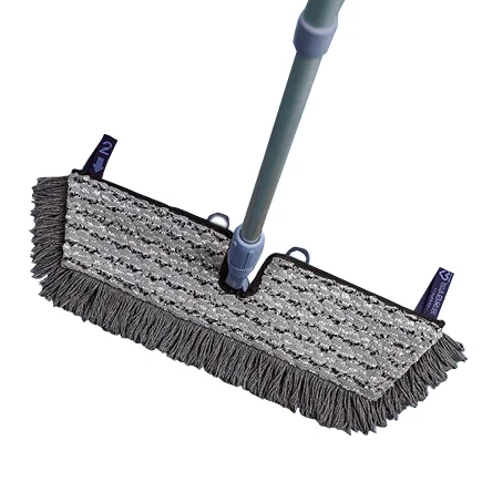 Двусторонний микроволоконный моп Дуо р-МикроКомби предназначен для ежедневной уборки открытых пространств методом Свеп Про. Микроволокно в форме 3D сот собирает пыль и мелкие частицы, щеточки из абразивов эффективно удаляют въевшиеся загрязнения, а длинная бахрома подметает мусор. Моп служит до 1000 стирок.