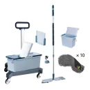 Обеспечивает чистый пол и эстетичную уборку без ведер с водой. Суперкомпактная тележка занимает всего 0,2 м2. Обеспечивает эффективную обработку поверхностей микроволокном. Эргономичная система и высококачественный, износостойкий инвентарь с долгим сроком службы и гарантией качества. Цветовое кодирование исключает перекрестные загрязнения. В комплект входит буклет с инструкцией по сборке и применению. Возможна доустановка салфеток, совка, сгина, дополнительных мопов и других аксессуаров.