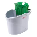 Высокое качество уборки обеспечивается эффективным туннельным отжимом от Vileda Professional. Конструкция изделия легкая, компактная и прочная. Отжим надежно крепится на ведре и легко снимается при необходимости. Ведро оснащено носиком для быстрого слива без разбрызгивания и эргономичной ручкой для удобной переноски. На внутренней стороне ведра нанесена шкала для дозирования моющих средств. Цветовое кодирование позволяет разграничивать зоны применения: доступно 4 варианта цвета отжима. Используется совместно с держателем для мопов УльтраСпид Мини 34 см. Гарантия качества предоставляется немецким брендом.