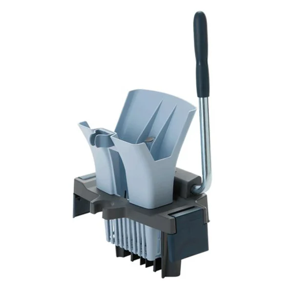 Серый пластиковый корпус и прочные металлические элементы устойчивы к дезинфицирующим средствам. Туннельный отжим отжимает моп равномерно и быстро, экономя жидкость и время цикла, а транспортировочная ручка UltraSpeed упрощает перемещение между комнатами. Доступны одинарные и двухведерная конфигурации с контейнерами под расходные материалы, в том числе совместимыми с мешками для мусора.