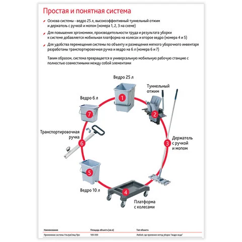 Двухведерный метод уборки позволяет вывести чистоту полов на новый уровень. Больше нет необходимости постоянно ходить к источнику воды и менять воду. Система УльтраСпид Про экономит время, силы и повышает эффективность работы персонала.