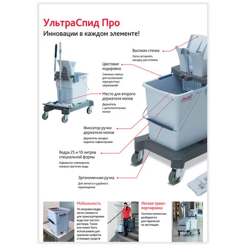 Профессиональная влажная уборка методом «ведро-вода» с туннельным отжимом системы УльтраСпид Про.