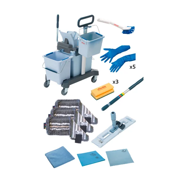 Набор предназначен для уборки внутри помещений площадью до 500 кв.м. и подходит для использования в офисах, салонах красоты, магазинах, аптеках, автосервисах, спортзалах, жилых домах и других учреждениях. Выполняет работы по уборке пола, протирке и очистке вертикальных и горизонтальных поверхностей от ежедневных загрязнений.