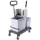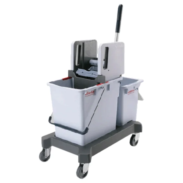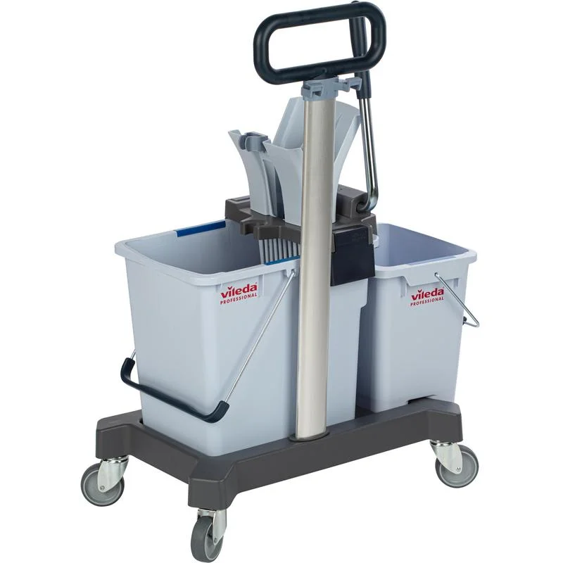 Двухведерная система с ведрами 25 и 10 л на колесной платформе КомбиСпид Про с универсальным вертикальным отжимом и транспортировочной ручкой. Система, состоящая из двух ведер, позволяет значительно повысить эффективность уборки традиционным методом ‘ведро-вода’. Данная система применима для всех видов мопов – как плоских, так и веревочного типа (например, Кентукки) с весом до 400 г. Универсальный вертикальный отжим Vileda Professional сделан из высококачественных материалов и стабильно работает в течение всего срока эксплуатации.