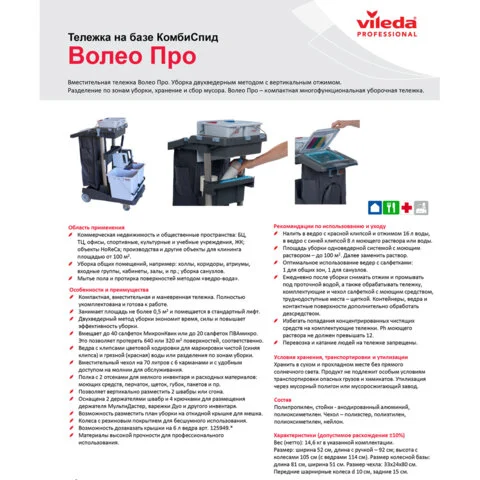 Разделение по зонам уборки, хранение и сбор мусора. Волео Про – компактная многофункциональная уборочная тележка.